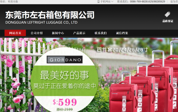 東莞市左右箱包有限公司選用我司企業的網站設計優化產品,其seo關鍵詞為箱包, 定制有針對性的SEO優化執行方案,根據盈利模式和核心產品選擇更適合的精準關鍵詞。配備專業SEO優化團隊,項目前期做好市場、企業定位、目標用戶、盈利模式分析 東莞市左右箱包有限公司成立于2005年,是經東莞市市場監督管理局審核的有資質的公司。公司地址:中國 廣東 東莞市 望牛墩鎮中路64號