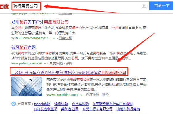 我們公司與東莞市途派運動用品有限公司合作中,對這個公司所經營的騎行用品這個行業的搜索引擎優化推廣積累了豐富的經驗;同時在該行業的搜索引擎優化推廣等多元化的騎行用品領域中也有很多的成功的案例;但愿通過我們的合作,能夠幫助到合作伙伴在同行業中遙遙領先。