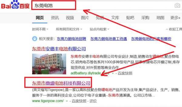 東莞市鼎盛電池科技有限公司選用我司企業皮革的網站優化產品,其SEO關鍵詞有電池、電池配件。主要針對百度、搜狗、360等搜索引擎進行快速排名優化服務,關鍵詞排名必要條件是在搜索結果前3頁,周期15天內可優化到搜索引擎首頁。東莞市鼎盛電池科技有限公司成立于2008年,是經東莞市市場監督管理局審核的有資質的公司,其統一社會信用代碼:91441900673059293L。公司地址:東莞市清溪鎮青湖工業園香山路雷田街1號。