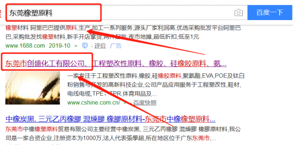 我們公司與東莞市創(chuàng)盛化工有限公司合作中,對這個公司所經(jīng)營的橡塑原料這個行業(yè)提供了百度快照排名,與該公司的合作,更多的客戶讓我們公司為其提供百度快照排名,通過每一次合作,我們公司不斷完善自己,同時希望合作伙伴在經(jīng)營的路上越來越好。