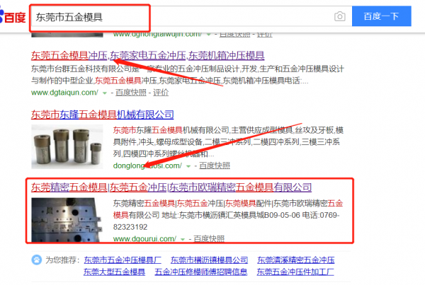 我們公司與東莞市橫瀝歐瑞精密五金模具制造廠合作中,對這個公司所經營的五金模具這個行業提供了百度快照排名,與該公司的合作,更多的客戶讓我們公司為其提供百度快照排名,通過每一次合作,我們公司不斷完善自己,同時希望合作伙伴在經營的路上越來越好。