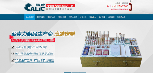 東莞市凱*克展示制品有限公司是一家全方位服務于商務促銷禮品及家居用品的專業禮品公司,具備龐大的配供體系和營銷網絡,以地理環境優越的香港和東莞兩地為主的主要銷售基地,是集中開發設計、生產、銷售有機玻璃(亞克力)制品和水晶膠制品為一體的生產產家!