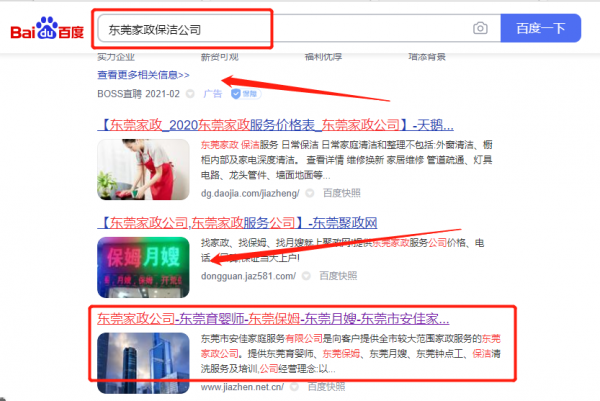 東莞市*佳家庭服務有限公司整站優化參考網站