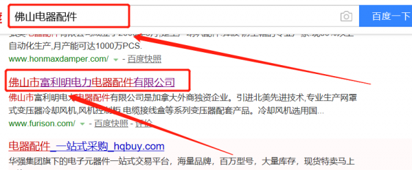 佛山市富利明電力電器配件有限公司選用我司企業電器配件行業的網站優化產品,其SEO關鍵詞有電器配件。通過對搜索引擎目標關鍵詞優化,使目標網站的相關信息顯示在百度首頁,為企業挖掘更多的潛在客戶的同時帶來海量的商機。佛山市富利明電力電器配件有限公司成立于2001年,是經佛山市市場監督管理局審核的有資質的公司,其統一社會信用代碼:91440300568515365L。公司地址:廣東省佛山市高明區荷城街道富灣工業開發區。