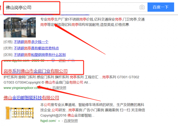 我們公司與佛山市金庭門業有限公司合作中,對這個公司所經營的崗亭這個行業提供了SEO優化,與該公司的合作,更多的客戶讓我們公司為其提供SEO優化,通過每一次合作,我們公司不斷完善自己,同時希望合作伙伴在經營的路上越來越好。