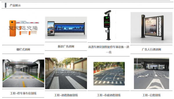 廣州市冠定達交通科技有限公司是一家集交通設施工程設計、施工、維護、生產、銷售為一體的中國交通安全設施行業的綜合企業之一。廣州市冠定達交通科技有限公司提供專業道路交通設施的規劃設計安裝施工一體化解決方案的全面服務。公司專業承接道路熱熔劃線工程、交通標識牌系統工程;專業承接智能停車場管理系統工程;專業承接環氧地坪設計、施工;大型商業廣場/工廠/倉庫/學校/醫院等等的停車場交通設施施工安裝工程;專業從事各類交通設施產品的生產、批發。