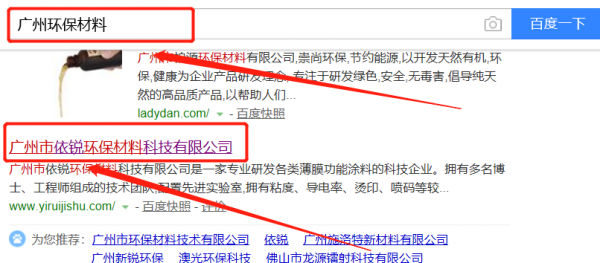 廣州市依銳環(huán)保材料科技有限公司選用我司企業(yè)環(huán)保材料的網(wǎng)站優(yōu)化產(chǎn)品,其SEO關鍵詞有環(huán)保材料。搜索品牌詞,首頁至少霸占5條,通過營銷型網(wǎng)站、媒體文章、口碑等方式,達到全方位霸屏,全面展示企業(yè)實力。廣州市依銳環(huán)保材料科技有限公司成立于2007年,是經(jīng)廣州市市場監(jiān)督管理局審核的有資質(zhì)的公司,其統(tǒng)一社會信用代碼:91440104726798429W。公司地址:廣東省廣州市天河區(qū)中山大道中130號4至九層。
