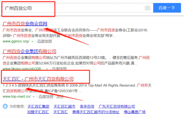 廣州市天匯百貨有限公司跟本公司簽訂快速排名合同