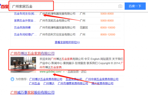 廣州市博達(dá)五金家具有限公司選用我司企業(yè)家居五金的網(wǎng)站優(yōu)化產(chǎn)品,其SEO關(guān)鍵詞有家居五金。通過(guò)反饋站點(diǎn)的客戶體驗(yàn)給搜索引擎,提升網(wǎng)站的關(guān)注度和友好度,從而達(dá)到關(guān)鍵字排名迅速提升的效果。廣州市博達(dá)五金家具有限公司成立于2007年,是經(jīng)廣州市市場(chǎng)監(jiān)督管理局審核的有資質(zhì)的公司,其統(tǒng)一社會(huì)信用代碼:91440114567929590B。公司地址:廣東省廣州市花都區(qū)新雅街雅瑤中路自編13號(hào)(可作廠房使用)。