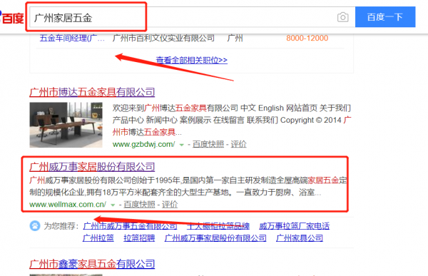我們公司與廣州威萬事家居股份有限公司合作中,對這個公司所經營的家居五金這個行業提供了百度快照排名,與該公司的合作,更多的客戶讓我們公司為其提供百度快照排名,通過每一次合作,我們公司不斷完善自己,同時希望合作伙伴在經營的路上越來越好。