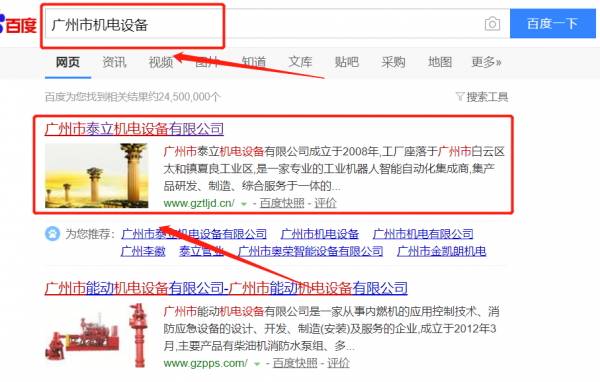 廣州市泰立機(jī)電設(shè)備有限公司與我司簽下百度霸屏協(xié)議