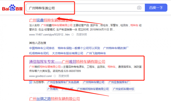 廣州唯*特種車輛有限公司百度排名到首頁按天扣費