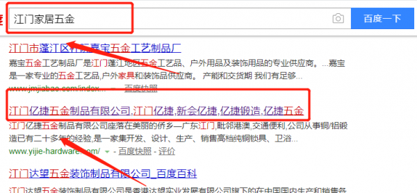 江門億捷五金制品有限公司選用我司企業家居五金行業的網站優化產品,其SEO關鍵詞有家居五金。獲取訪客手機號等精準信息,自動生成網站流量和關鍵詞排名報告,推廣效果一目了然,無需專業人員打理江門億捷五金制品有限公司成立于2000年,是經江門市市場監督管理局審核的有資質的公司,其統一社會信用代碼:914407007229327901。公司地址:廣東省江門市新會區雙水鎮豐華工業開發區。