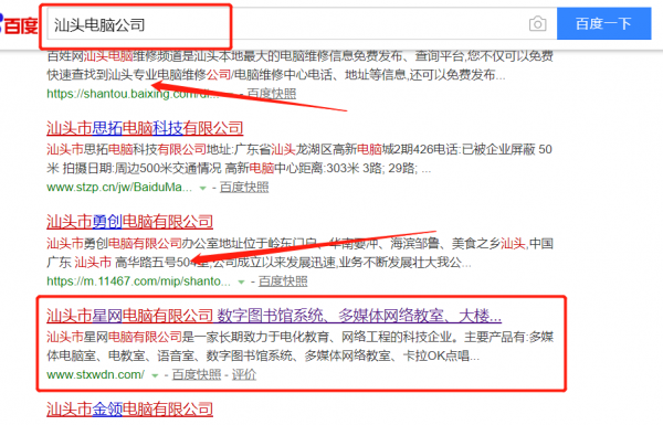 我們公司與汕頭市星網電腦有限公司合作中,對這個公司所經營的電腦這個行業提供了SEO網站優化,與該公司的合作,更多的客戶讓我們公司為其提供百度快照排名,通過每一次合作,我們公司不斷完善自己,同時希望合作伙伴在經營的路上越來越好。