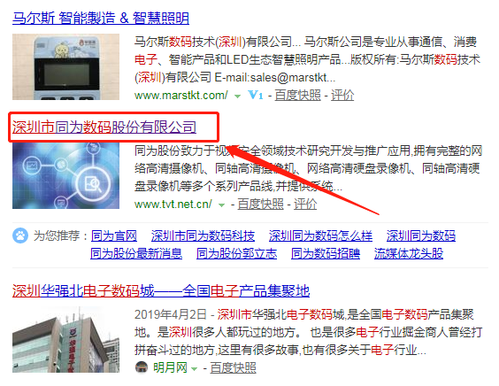 我們公司與深圳市同為數碼科技股份有限公司合作中,對這個公司所經營的數碼電子這個行業的SEO推廣積累了豐富的經驗;同時在該行業的SEO推廣等多元化的數碼電子領域中也有很多的成功的案例;但愿通過我們的合作,能夠幫助到合作伙伴在同行業中遙遙領先。