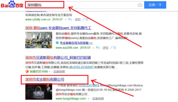 深圳市宏志箱包有限公司選用我司企業(yè)箱包行業(yè)的網(wǎng)站優(yōu)化產(chǎn)品,其SEO關(guān)鍵詞有箱包、手袋。關(guān)鍵詞不限點(diǎn)擊次數(shù),大量搜索流量直達(dá)官網(wǎng);PC + 手機(jī)端搜索首頁(yè)自然排名,365天持效穩(wěn)定收錄。深圳市宏志箱包有限公司成立于2012年,是經(jīng)深圳市市場(chǎng)監(jiān)督管理局審核的有資質(zhì)的公司,其統(tǒng)一社會(huì)信用代碼:91440300591873160C。公司地址:深圳市龍華區(qū)龍華街道清湖社區(qū)清寧路富士康百鳴園宿舍樓(清湖科技園)C座10層1059-1060室。