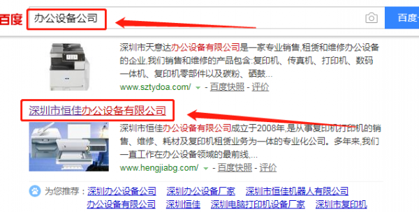 深圳市恒佳辦公設(shè)備有限公司選用我司企業(yè)美容行業(yè)的網(wǎng)站優(yōu)化產(chǎn)品,其SEO關(guān)鍵詞有是從事復(fù)印機打印機的銷售、維修、及復(fù)印機租賃業(yè)務(wù)為一體的專業(yè)化公司。從站內(nèi)到站外,人工智能全新搜索優(yōu)化技術(shù),最快7天關(guān)鍵詞排名上首頁,利用互聯(lián)網(wǎng)營銷手法,多平臺,多樣化進行品牌內(nèi)容鋪設(shè),營造企業(yè)正面形象。深圳市恒佳辦公設(shè)備有限公司成立于2011年,是經(jīng)深圳市市場監(jiān)督管理局審核的有資質(zhì)的公司,其統(tǒng)一社會信用代碼:914403008719988982。公司地址:廣東省深圳市福田區(qū)華強北賽格科技園二棟西10F。