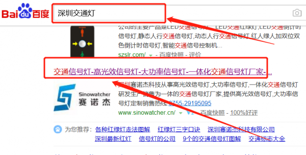 我們公司與深圳市賽諾杰科技有限公司合作中,對這個公司所經營的交通燈這個行業提供了搜索引擎優化推廣,與該公司的合作,更多的客戶讓我們公司為其提供搜索引擎優化推廣,通過每一次合作,我們公司不斷完善自己,同時希望合作伙伴在經營的路上越來越好。