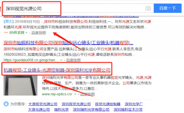 我們公司與深圳瑞利光學有限公司合作中,對這個公司所經營的視覺光源這個行業提供了搜索引擎優化推廣,與該公司的合作,更多的客戶讓我們公司為其提供搜索引擎優化推廣,通過每一次合作,我們公司不斷完善自己,同時希望合作伙伴在經營的路上越來越好。