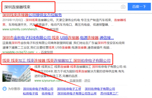 我們公司與深圳佑申電子有限公司合作中,對這個公司所經營的連接器線束這個行業(yè)提供了SEO網站優(yōu)化,與該公司的合作,更多的客戶讓我們公司為其提供SEO網站優(yōu)化,通過每一次合作,我們公司不斷完善自己,同時希望合作伙伴在經營的路上越來越好。