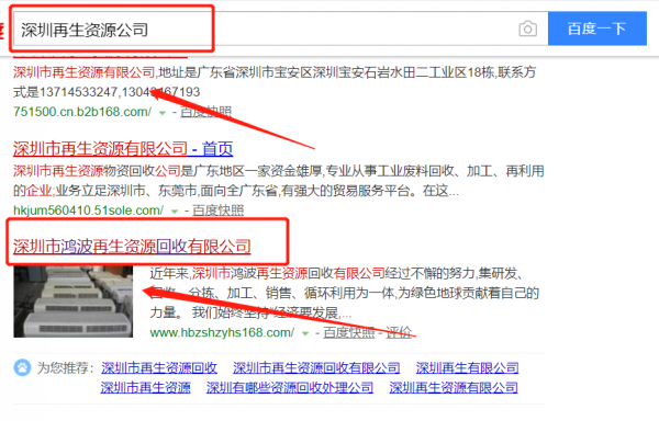 深圳市鴻波再生資源回收有限公司選用我司企業再生資源行業的網站優化產品,其SEO關鍵詞有再生資源。利用全新的SEO技術,在短時間內使關鍵詞占領搜索引擎首頁,為企業官網獲取更多更精準的流量。大數據分析,針對性定位,推廣,專屬定制最適合您,效果最全面的的推廣方案,更有效果保證!深圳市鴻波再生資源回收有限公司成立于2015年,是經深圳市市場監督管理局審核的有資質的公司,其統一社會信用代碼:91440300359323500U。公司地址:廣東省深圳市福田區沙頭街道新洲四街福瑞閣首層101。