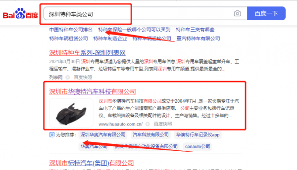 深圳市華*特汽車科技有限公司百度排名排名案例欣賞