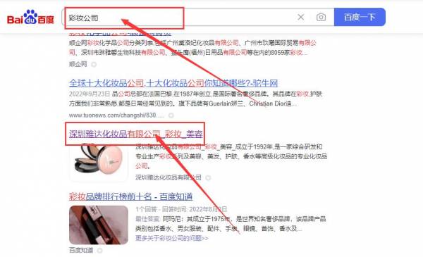 深圳雅*化妝品有限公司百度關鍵詞排名最快上詞效果展示