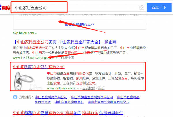 我們公司與中山市朗諾五金制品有限公司合作中,對這個公司所經(jīng)營的家居五金這個行業(yè)提供了關(guān)鍵詞搜索排名,與該公司的合作,更多的客戶讓我們公司為其提供關(guān)鍵詞搜索排名,通過每一次合作,我們公司不斷完善自己,同時希望合作伙伴在經(jīng)營的路上越來越好。