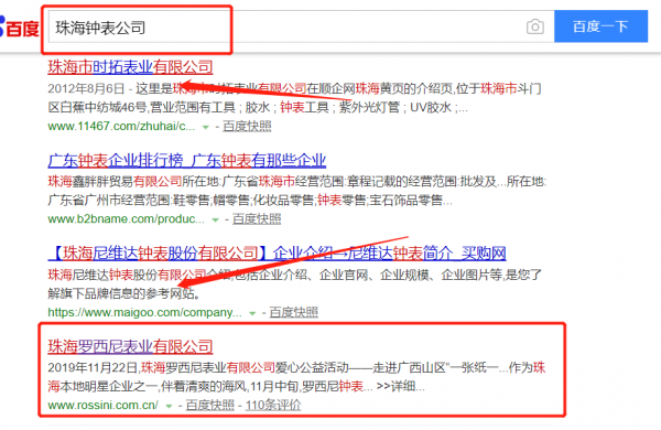 珠海羅西尼表業有限公司與我司簽下百度霸屏協議