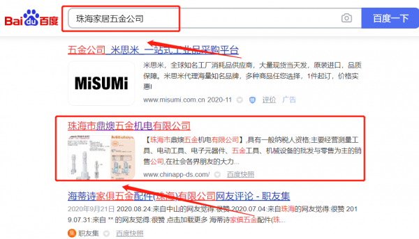 珠海市鼎*五金機(jī)電有限公司選用我司企業(yè)家居五金行業(yè)的網(wǎng)站優(yōu)化產(chǎn)品,其SEO關(guān)鍵詞有家居五金。覆蓋國(guó)內(nèi)幾大主流搜搜引擎,占領(lǐng)電腦端、手機(jī)端,24小時(shí)快速獲取關(guān)鍵詞排名,搶奪流量。珠海市鼎*五金機(jī)電有限公司成立于2004年,是經(jīng)珠海市市場(chǎng)監(jiān)督管理局審核的有資質(zhì)的公司,其統(tǒng)一社會(huì)信用代碼:9144040009**33563E。公司地址:廣東省珠海市金灣區(qū)紅旗鎮(zhèn)華興圍萬(wàn)春園第二棟4#商鋪。