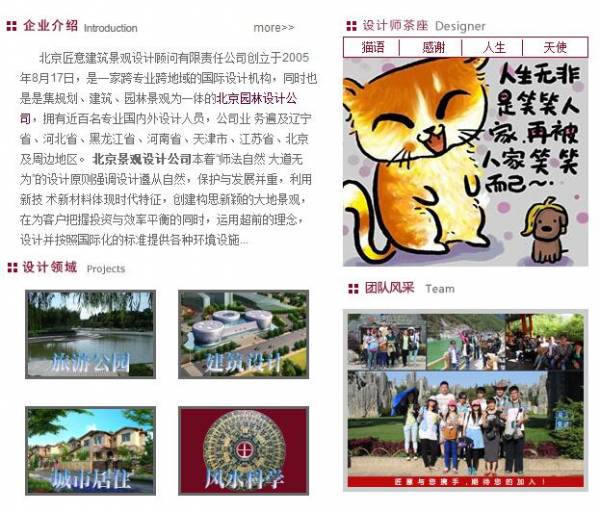 北京匠意建筑景觀設(shè)計(jì)顧問(wèn)有限責(zé)任公司選用我司企業(yè)園林綠化行業(yè)的網(wǎng)站優(yōu)化產(chǎn)品,其SEO關(guān)鍵詞有 北京景觀設(shè)計(jì)公司,北京園林設(shè)計(jì)公司,園林景觀設(shè)計(jì)公司。其特點(diǎn)是用很合適的展示方式、展示效果、站點(diǎn)框架,把客戶及其用戶很關(guān)心的問(wèn)題突出表現(xiàn);并以簡(jiǎn)潔明朗的設(shè)計(jì)風(fēng)格,清晰展現(xiàn)公司水平實(shí)力,確保一秒抓住目標(biāo)用戶眼球,給用戶留下良好的第一印象。北京匠意建筑景觀設(shè)計(jì)顧問(wèn)有限責(zé)任公司成立于2005年,是經(jīng)海淀區(qū)市場(chǎng)監(jiān)督管理局審核的有資質(zhì)的公司,其統(tǒng)一社會(huì)信用代碼:91110108779533336D。公司地址:北京市海淀區(qū)上地信息路19號(hào)307室。