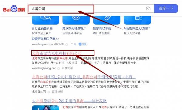 北海市龍*光電科技有限公司網站優化排名效果展示
