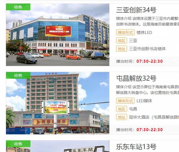 公司媒體遍布海南全島,主要位于海口、三亞市區(qū)及環(huán)島高速路旁,有單立柱雙面、三面噴繪大牌;單立柱及樓頂三面翻;大型跨線橋及天橋燈箱等。公司擁有百座以上市區(qū)與路網(wǎng)大型立柱廣告媒體,總計廣告面積3萬余平方米。