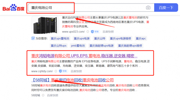 重慶鴻*電源有限公司快速排名案例欣賞