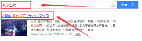 重慶文譽創廣告傳媒有限公司選用我司企業禮儀行業的網站優化產品,其SEO關鍵詞有重慶文譽創,重慶禮儀公司,重慶廣告公司,重慶慶典公司,重慶公關公司,燈光音響,文藝演出,開工奠基儀式,開業慶典,會議會展,禮儀模特(重慶文譽創廣告傳媒有限公司)。主要針對關鍵詞在搜索結果中無排名的網站或新建網站進行的內部SEO,將關鍵詞合理分配到網站上,人工優化為主,調整后讓網站內部SEO和關鍵詞更符合百度收錄、快照更新及網站權重提升等效果。重慶文譽創廣告傳媒有限公司成立于2010年,是經重慶市市場監督管理局審核的有資質的公司,其統一社會信用代碼:91500105554094176G。公司地址:重慶市江北區渝北三村30號24-10。