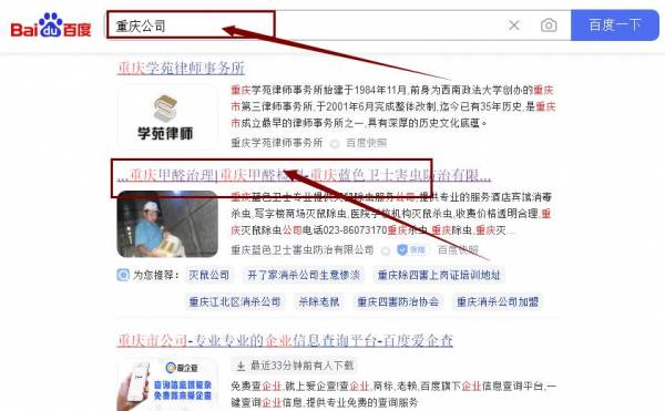 重慶藍*衛士害蟲防治有限公司網站優化最快上詞效果展示