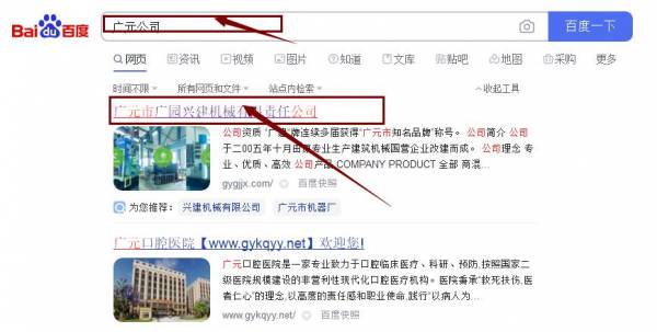 廣元市廣*興建機械有限責任公司網站優化排名效果展示