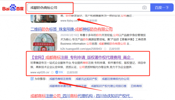 我們公司與四川*泰知識產權代理有限公司合作中,對這個公司所經營的防偽商標這個行業提供了優化排名,與該公司的合作,更多的客戶讓我們公司為其提供百度快照排名,通過每一次合作,我們公司不斷完善自己,同時希望合作伙伴在經營的路上越來越好。