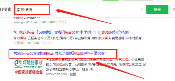 我們公司與成都巧媳婦家政服務有限公司合作中,對這個公司所經營的家政服務這個行業的,百度快照排名積累了豐富的經驗;同時在該行業的百度快照排名等多元化的領域中也有很多的成功的案例;但愿通過我們的合作,能夠幫助到合作伙伴在同行業中遙遙領先。