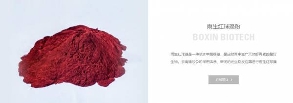 云南博欣生物科技股份有限公司成立于2014年12月19日,旗下有兩家子公司,公司座落于曲靖經濟技術開發區西城工業園區,占地545畝,是一家集科研、養殖、加工、銷售、貿易于一體的科技型民營企業。專業從事天然植物的研發和生產,現已開發生產出雨生紅球藻系列產品,產品主要銷往美國、日本、英國、法國、韓國、新加坡、馬來西亞等亞歐美國家。