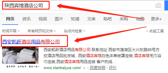 西安凱躍酒店用品有限公司與我司做搜索引擎優(yōu)化推廣項(xiàng)目,西安凱躍酒店用品有限公司選用我司賓館酒店行業(yè)的網(wǎng)站優(yōu)化產(chǎn)品,其SEO關(guān)鍵詞為西安凱躍酒店用品有限公司。通過(guò)對(duì)搜索引擎目標(biāo)關(guān)鍵詞優(yōu)化,使目標(biāo)網(wǎng)站的相關(guān)信息顯示在百度首頁(yè),為企業(yè)挖掘更多的潛在客戶的同時(shí)帶來(lái)海量的商機(jī)。西安凱躍酒店用品有限公司成立于2015年,是經(jīng)西安市工商行政管理局蓮湖分局審核的有資質(zhì)的公司,其統(tǒng)一社會(huì)信用代碼:91610113333653122L。公司地址:陜西省西安市蓮湖區(qū)大興東路88號(hào)E區(qū)027號(hào)。