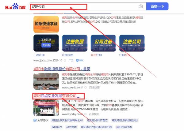咸陽啟*實業發展有限公司網站優化最快上詞效果展示