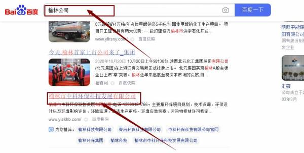 榆林市中*環保科技發展有限公司網站優化最快上詞效果展示