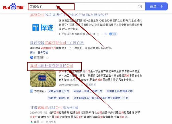 武威豐*種業有限責任公司最快上詞效果展示