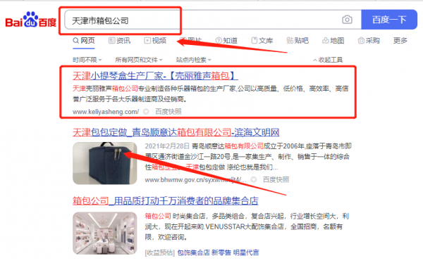 天津殼*雅聲箱包有限公司優化排名排名效果展示