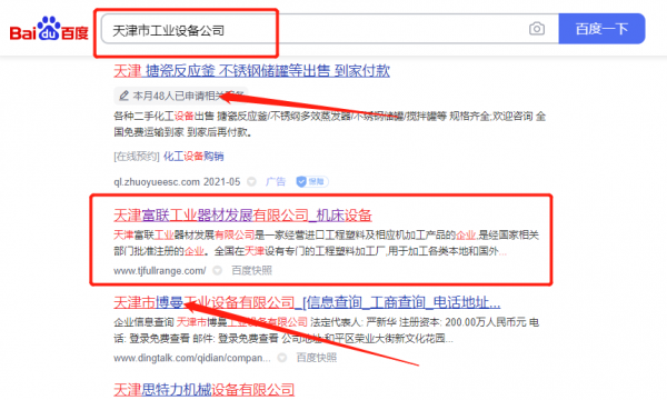 天津市富*工業(yè)器材開發(fā)有限公司百度關(guān)鍵詞排名排名參考網(wǎng)站