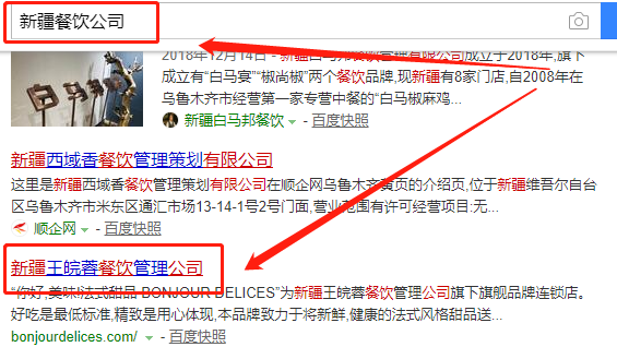 新疆王皖蓉餐飲管理有限公司與本司簽約SEO推廣項目,新疆王皖蓉餐飲管理有限公司選用我司餐飲管理行業的網站優化產品,其SEO關鍵詞有新疆王皖蓉餐飲管理公司,你好 美味。利用全新的SEO技術,在短時間內使關鍵詞占領搜索引擎首頁,為企業官網獲取更多更精準的流量。大數據分析,針對性定位,推廣,專屬定制最適合您,效果最全面的的推廣方案,更有效果保證!新疆王皖蓉餐飲管理有限公司成立于2016年,是經烏魯木齊市水磨溝區市場監督管理局審核的有資質的公司,其統一社會信用代碼:91650105MA776CTU16。公司地址:新疆烏魯木齊市水磨溝區南湖東路222號南湖花苑俊麟居2棟B座。