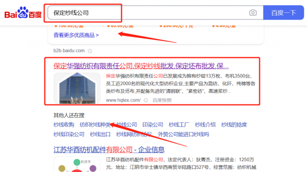 保定華*紡織有限責(zé)任公司新站排名快上詞效果展示