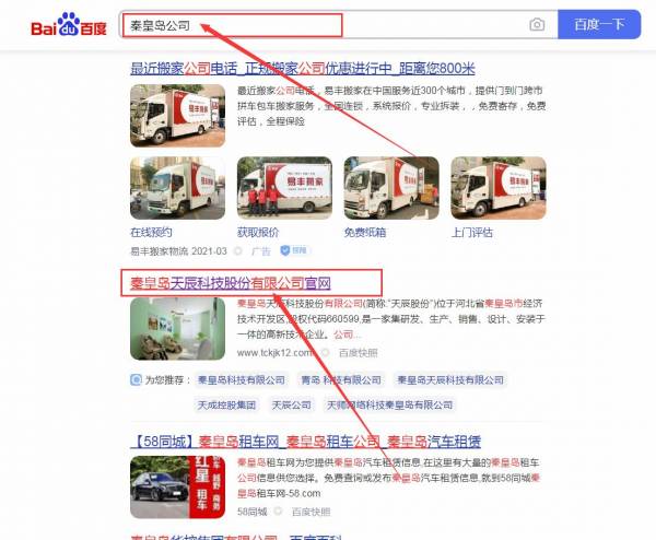 秦皇島天*科技股份有限公司網(wǎng)站優(yōu)化排名效果展示