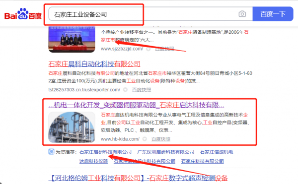 石家莊*達機電科技有限公司百度關鍵詞排名案例欣賞